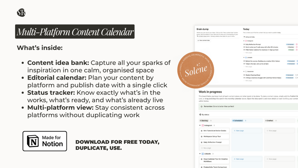 📥 Download the free Multi-Platform Content Calendar now and start showing up with intention.