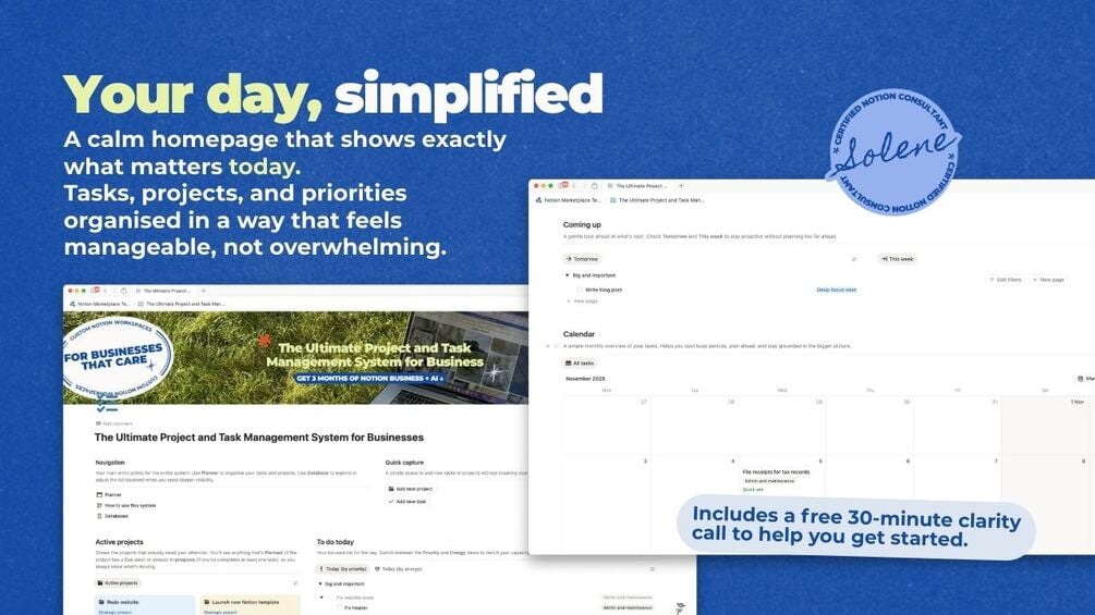 And if you want help tailoring it to your brain and your business, you also get a free 30-minute clarity call with me, no pressure, just support.